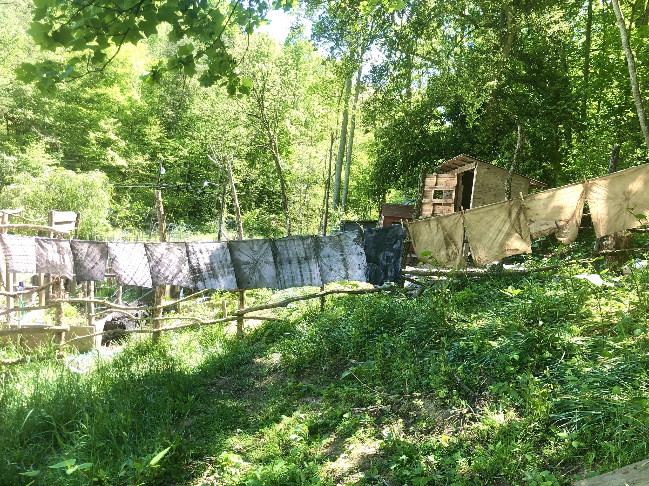 Hand-dyed bandanas, napkins, & t-shirt using Black Walnuts locally harvested in Eastern Tennessee.